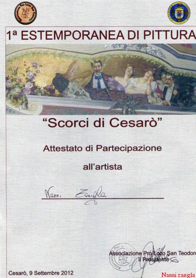 Partecipazione alla collettiva con tre opere; giornata bellissima, esperienza estemporanea da urlo, esito estemporanea il 16/09/2012.